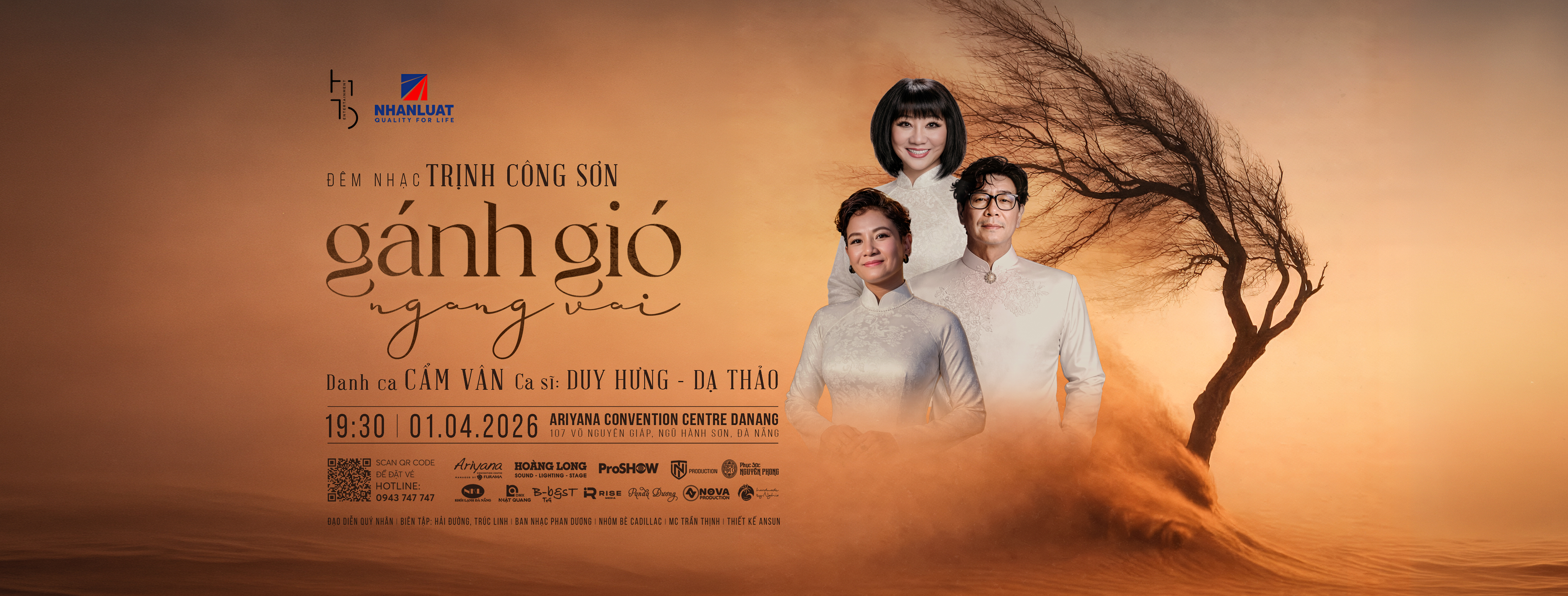 Vào ngày 01.04.2026, Cung Hội nghị Quốc tế Ariyana Đà Nẵng hân hạnh đồng hành cùng HITO Entertainment gửi trao đến quý khán giả một không gian âm nhạc duy mỹ, nơi những triết lý nhân sinh của người nhạc sĩ tài hoa được tái hiện qua đêm nhạc ✨ GÁNH GIÓ NGANG VAI ✨